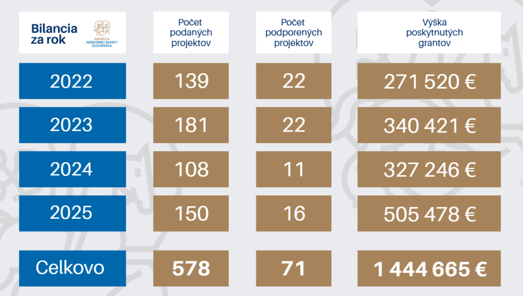 Pozrite si prehľad všetkých podporených projektov v rámci grantových výziev Nadácie NBS v roku 2025